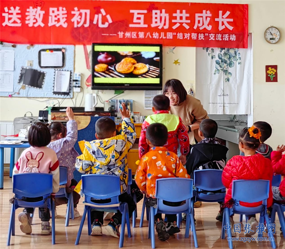中國張掖網甘州訊 為進一步推進“三抓三促”行動的深入開展,充分發揮示范園輻射、示范、引領作用,促進城鄉一體、公民共建,實現“促成長、同發展、共進步”目標。10月18日,甘州區第八幼兒園一行四人在園長的帶領下,分別到花寨鄉中心幼兒園、七霞幼兒園開展了以“送教踐初心 互助共成長”為主題的送培進校交流活動。