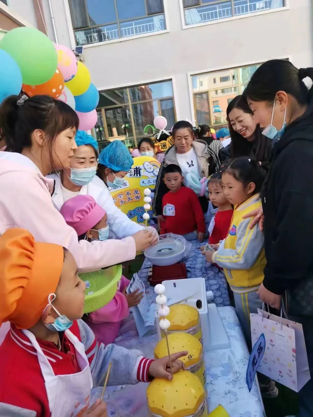 “要不要棉花糖,一個一塊錢。”“甜心鋪”“小老 板”稚嫩的叫賣聲,招來了很多“小顧客”,“我要這個,給你一元。”……大二班的張進翰忙得不可開交,一手收錢,一手遞棉花糖,收好裝錢的袋子,又開始“吆喝”。