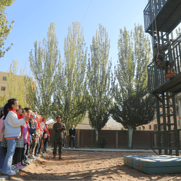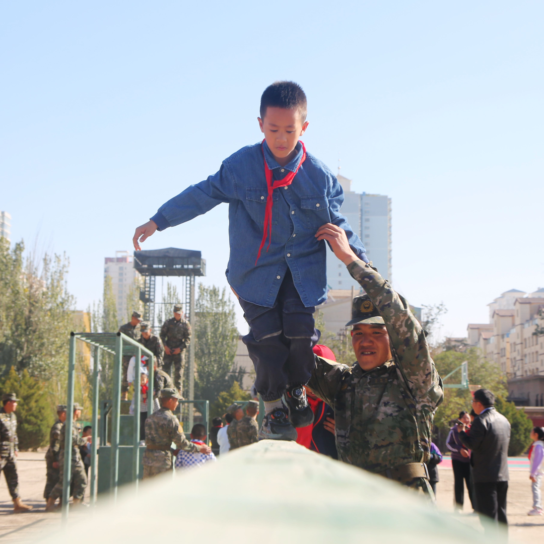 少先隊員們還觀看了官兵日常訓練課目演示,攀登水平懸梯障礙、跨欄、騰躍方窗等,動作一氣呵成。在武警官兵的標準示范和耐心指導下,少先隊員們躍躍欲試,親自上場體驗,感受到了武警官兵們日常訓練的辛苦與不易。
