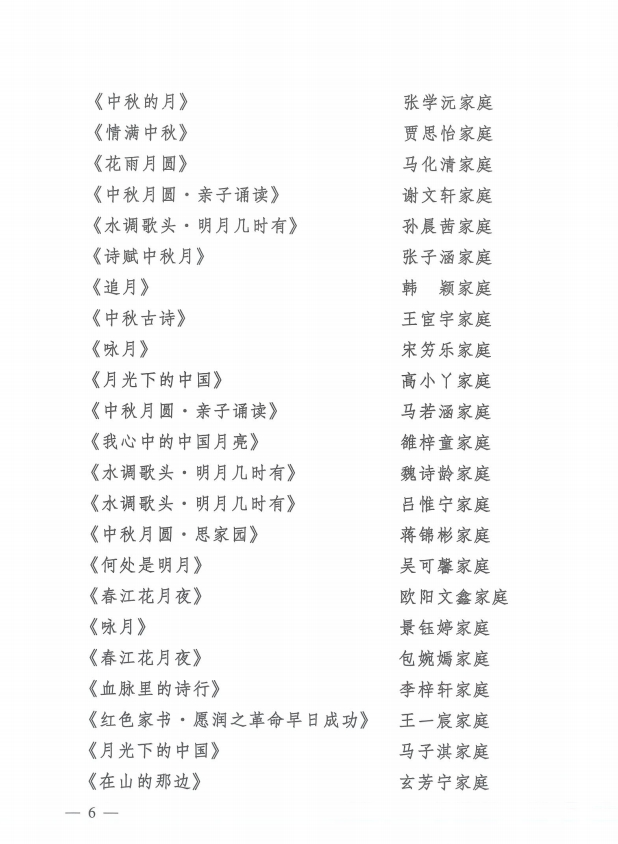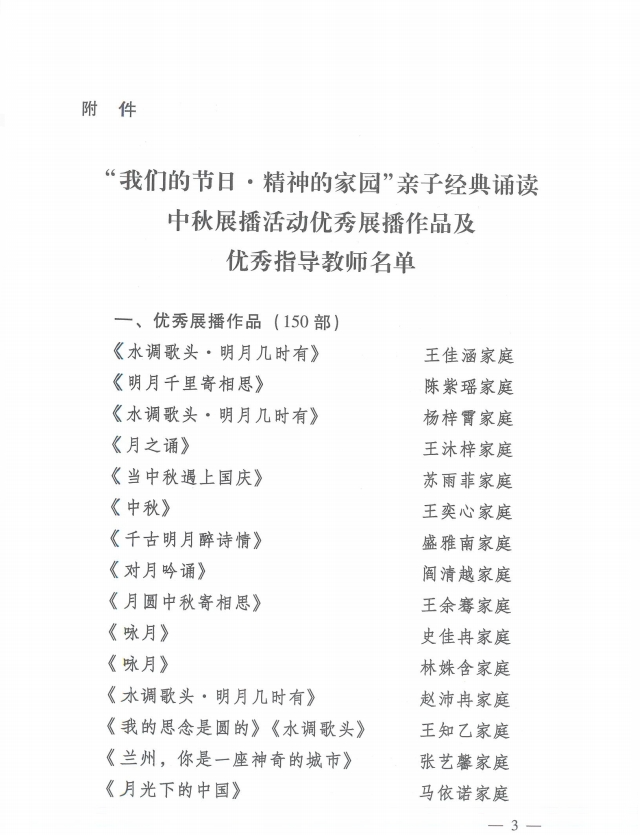 附件:“我們的節(jié)日?精神的家園”親子經(jīng)典誦讀中秋展播活動(dòng)優(yōu)秀展播作品及優(yōu)秀指導(dǎo)教師名單