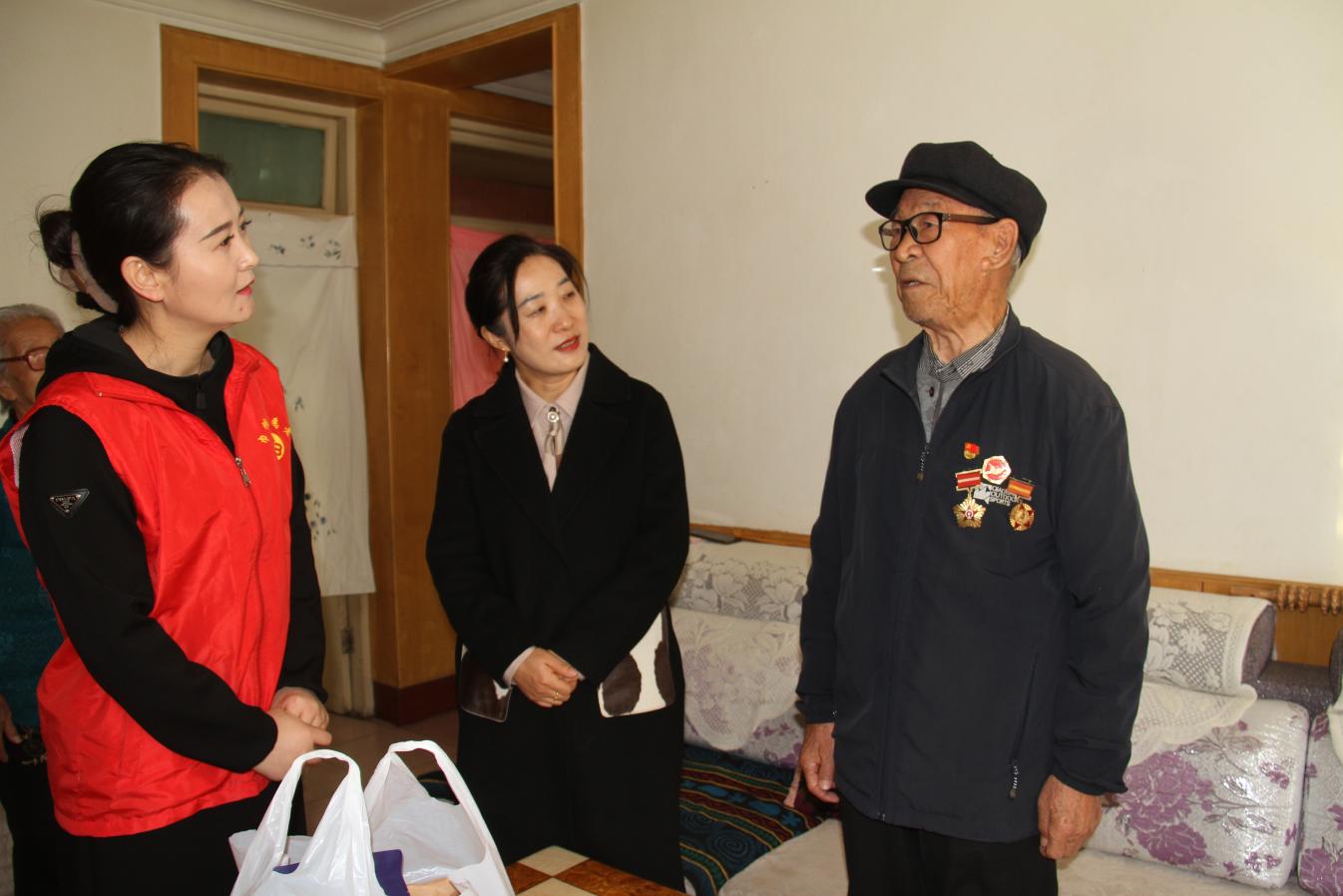 中國張掖網高臺訊 為更好地傳承紅色基因,弘揚革命精神,10月23日,是中華民族傳統節日重陽節,中國工農紅軍西路軍紀念館組織志愿者走訪慰問抗美援朝老兵代表,詳細詢問老人們的身體狀況和生活情況,向他們致以崇高的敬意和節日的祝福。