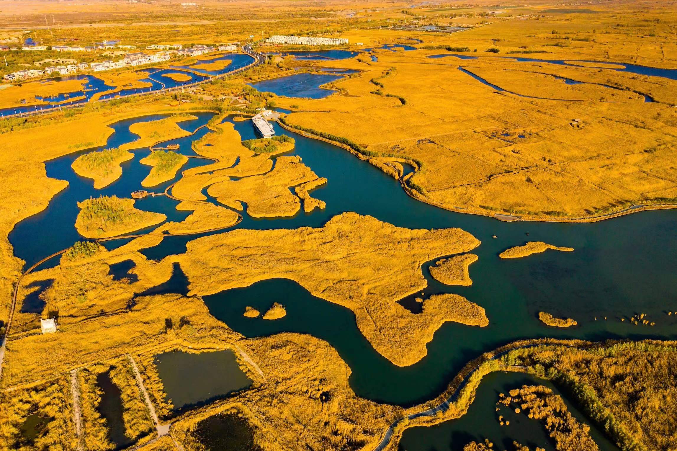 中國張掖網(wǎng)訊 金秋十月,張掖國家濕地公園萬畝蘆葦一片金黃,從高空俯瞰,葦草綿綿,秋水盈盈,美不勝收。(巨興奮 吳瑋)