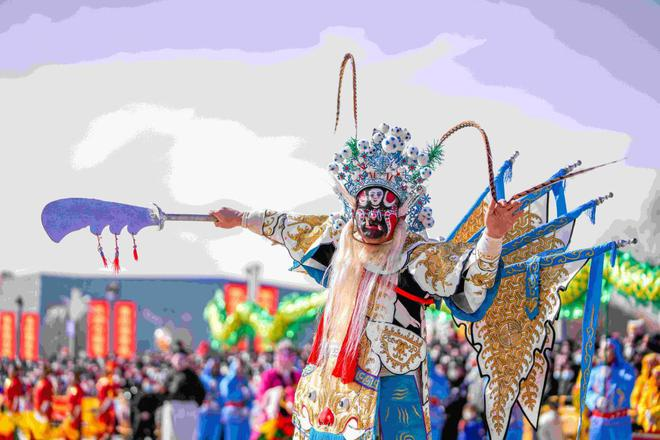高臺縣元宵社火展演上演秦腔獠牙絕技