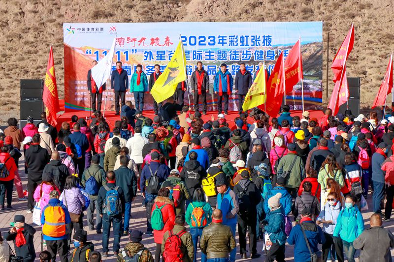中國張掖網訊 11月11日,2023年第三屆彩虹張掖“11.11”外星谷星際主題徒步健身活動暨肅南縣冬季旅游精品線路發布儀式,在肅南縣外星谷星際主題地質公園隆重舉行。來自酒泉、嘉峪關、金昌等周邊地區和張掖市甘州區、高臺縣、山丹縣、肅南縣的戶外徒步和體育健身愛好者,共600多人參加了活動。