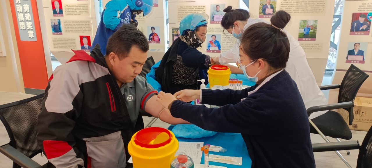 本次健康體檢團隊由專業醫護人員組成,體檢項目包括生化、胸透DR、心電圖等檢查項目。同時,邀請張掖市石學良眼科醫院眼科醫生為新就業形態勞動者開展愛心義診,并通過設置宣傳咨詢臺、擺放展板等形式,面向新就業形態勞動者宣傳《工會法》《勞動法》等法律法規知識和職工互助保障知識,幫助他們提高自身維權能力和健康意識。活動現場,大家有序排隊,佩戴口罩,嚴格按照流程,聽從工作人員的指引,信息核對、簽字、打印指引單、采血……體檢程序有條不紊地進行著。大家做完體檢后,有序走進甘州區勞模事跡展覽和中國工人運動史展覽,參觀學習勞模先進事跡,了解中國工人運動的光輝歷史,感悟榜樣精神,汲取奮進力量。據悉,為1000名新就業形態勞動者會員開展免費體檢并建立健康檔案,提供專項技能、健康保健、互助保障培訓服務是今年張掖市總工會為基層工會和職工群眾辦理的五件實事之一,旨在通過健康體檢,使一線快遞員、網約送餐員和貨車司機等新就業形態職工們及時、準確、全面了解自己的身體狀況,進一步幫助職工增強“無病早預防,有病早發現、早治療”的意識,為快樂工作、更好生活奠定基礎。止目前,新就業形態勞動者已免費體檢800人,到18日本次體檢活動結束后,將累計完成體檢1450人。