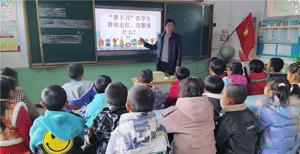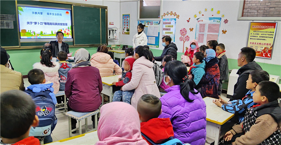 中國張掖網民樂訊 近期,玩具“蘿卜刀”爆紅,這種被打上“解壓神器”標簽的玩具也深受小學生、中學生歡迎。由于該玩具本身具有攻擊性,存在一定的安全隱患,又會形成心理暗示,激發孩子暴力傾向,對未成年人安全健康成長產生不良影響,為了確保學生的安全,近日,民樂縣新天鎮閆戶小學以開家長會、隊會形式開展了關于“蘿卜刀”安全隱患排查及宣傳活動。