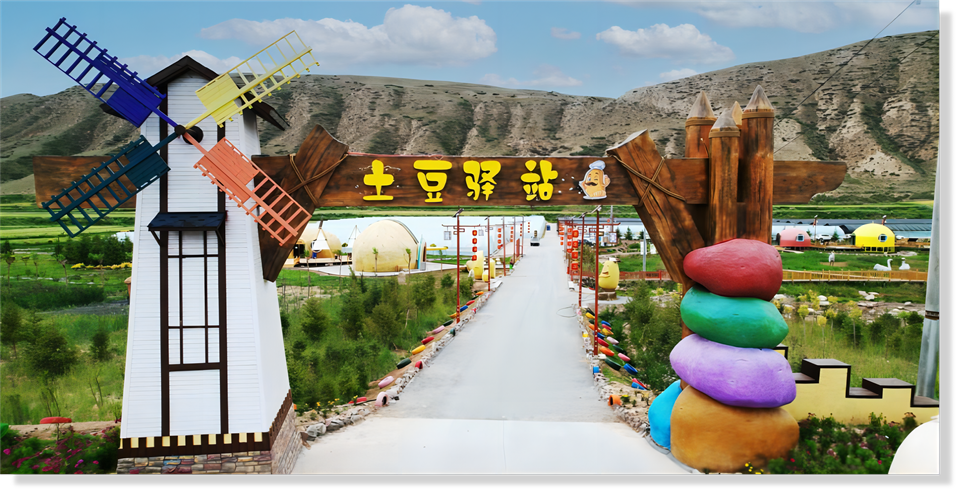 土豆驛站位于山丹縣大馬營鎮新墩村,是在原有馬鈴薯原原種繁育基地的基礎上,新建的以馬鈴薯為核心元素,融入集馬鈴薯原原種繁育、農業研學觀光、生態旅游觀光等為一體的馬鈴薯特色節點景觀。隨著該項目的建成運營,不僅為新墩村增加了集體經濟收入,同時還帶動周邊村社村民增收致富。