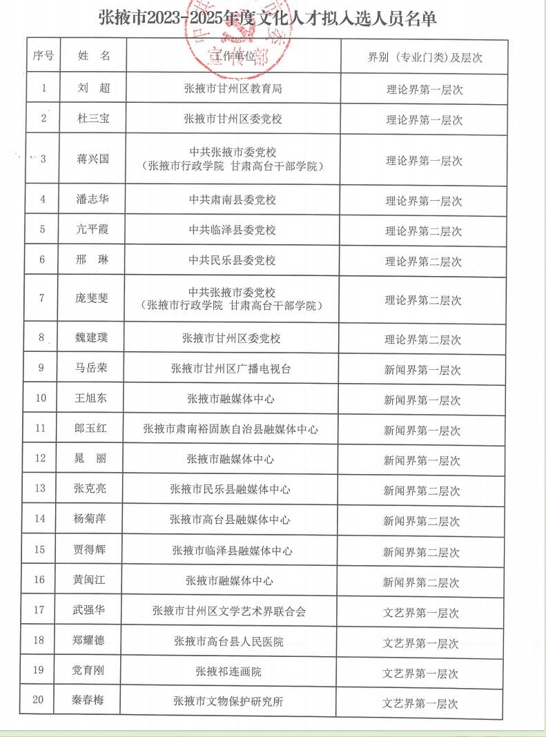 附件:張掖市2023-2025年度文化人才擬入選人員名單