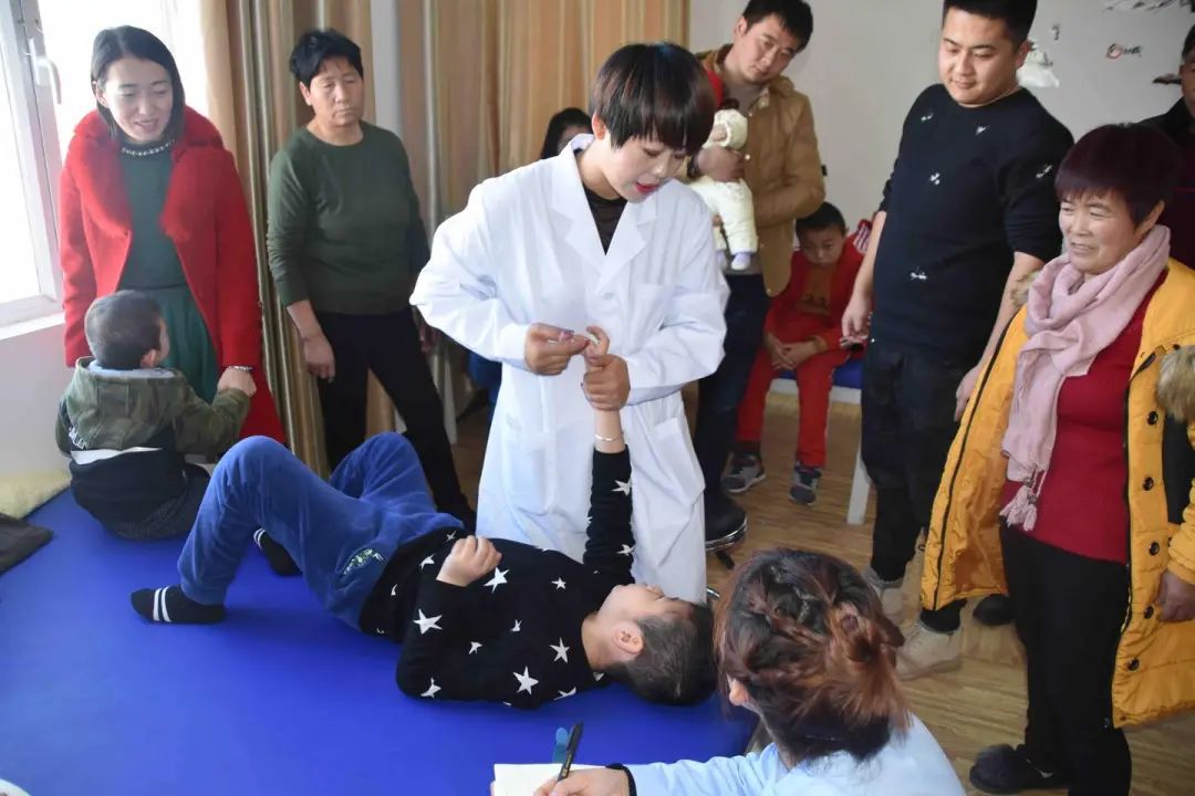 山丹縣溫馨日間照料中心l理事長莊月英為殘障兒童開展康復(fù)治療