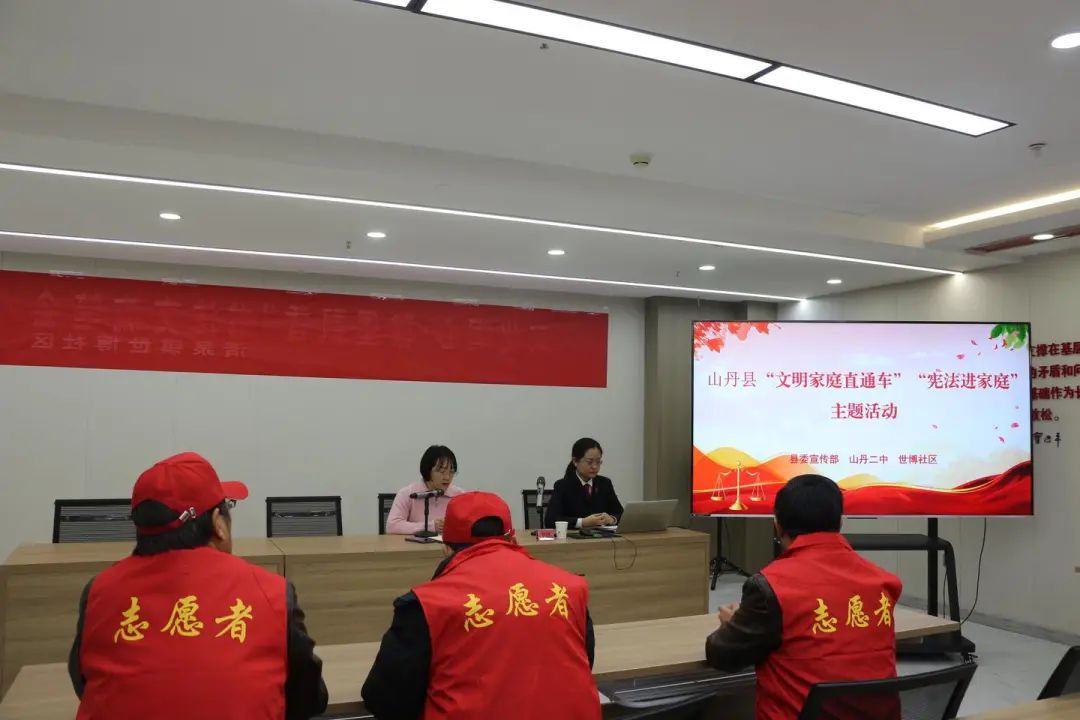 山丹縣“文明家庭直通車”任曉家庭小分隊(duì)深入世博社區(qū)開展憲法宣講