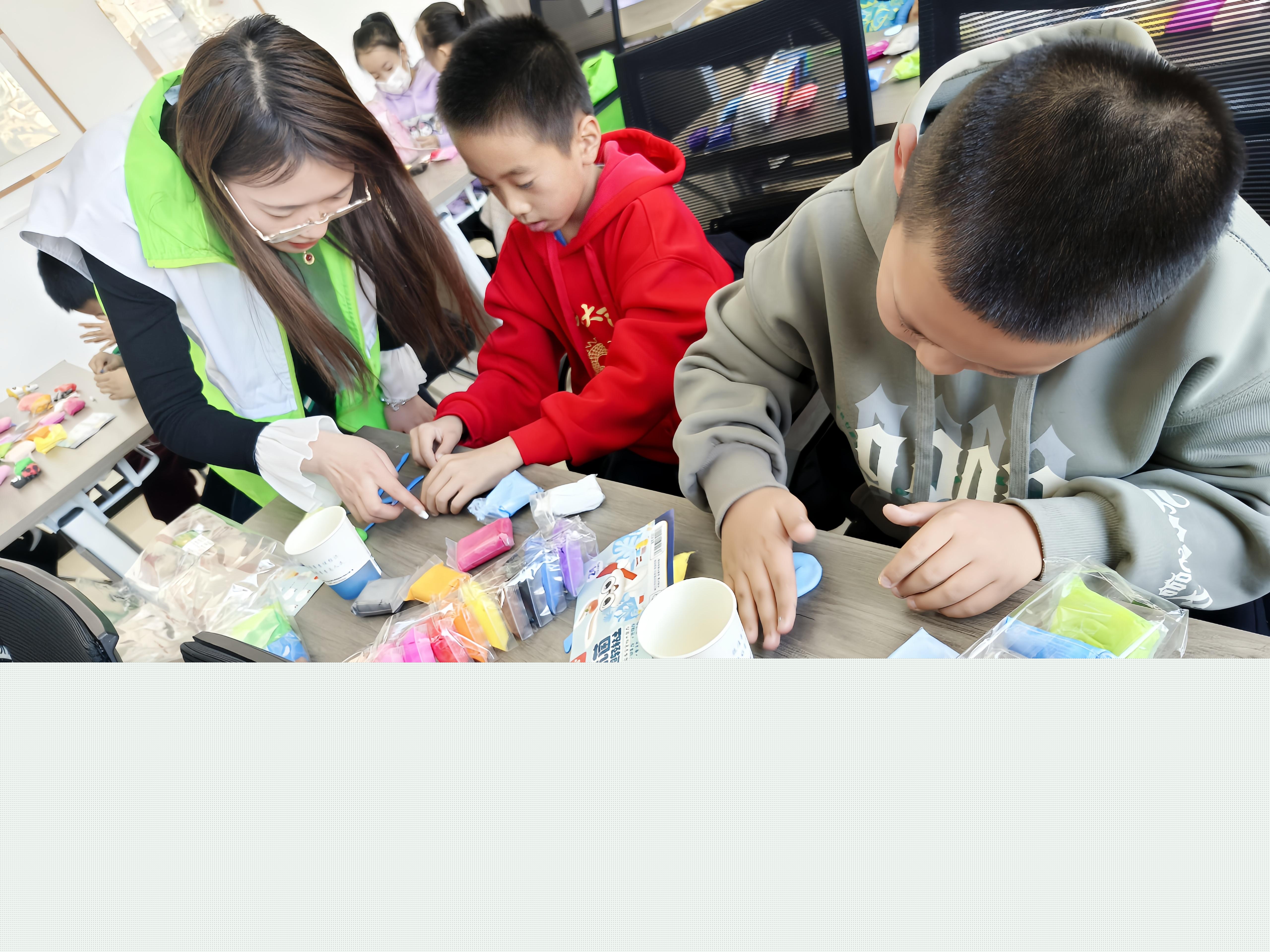 走進城關(guān)鎮(zhèn)東苑社區(qū)紅領(lǐng)巾愛心課堂,孩子們在志愿者老師的幫助下,認真地做著彩泥手工,很快,一個個手工作品便在孩子們小手中逐漸成形,充滿童趣。
