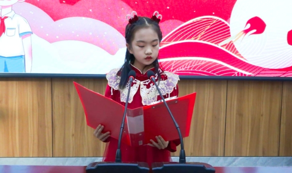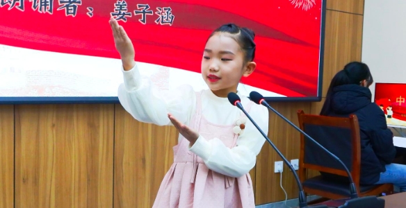 翻開紅色篇章,重溫百年征程。活動中,孩子們神采飛揚,以情帶聲,聲情并茂,把真摯的情感融入朗誦之中,他們或深情鄭重、或鏗鏘堅定、或慷慨激昂、或淺吟輕誦,精彩演繹《讀中國》《紅領巾心向黨》《如果信仰有顏色》《董存瑞舍身炸暗堡》等一首首優秀紅色經典作品。每個節目都以獨具匠心的形式生動地表達了新時代少年兒童緬懷革命先烈,賡續紅色血脈,爭做時代新人的決心與信心。參賽者徐藝玨:紅色經典是我們民族的瑰寶,通過誦讀活動,我感受到了革命先輩們的堅定信念和不屈精神,以及他們為了實現民族獨立和人民幸福而奮斗的豪情壯志,我以后一定會做一名講道德、講文明的新一代好少年。