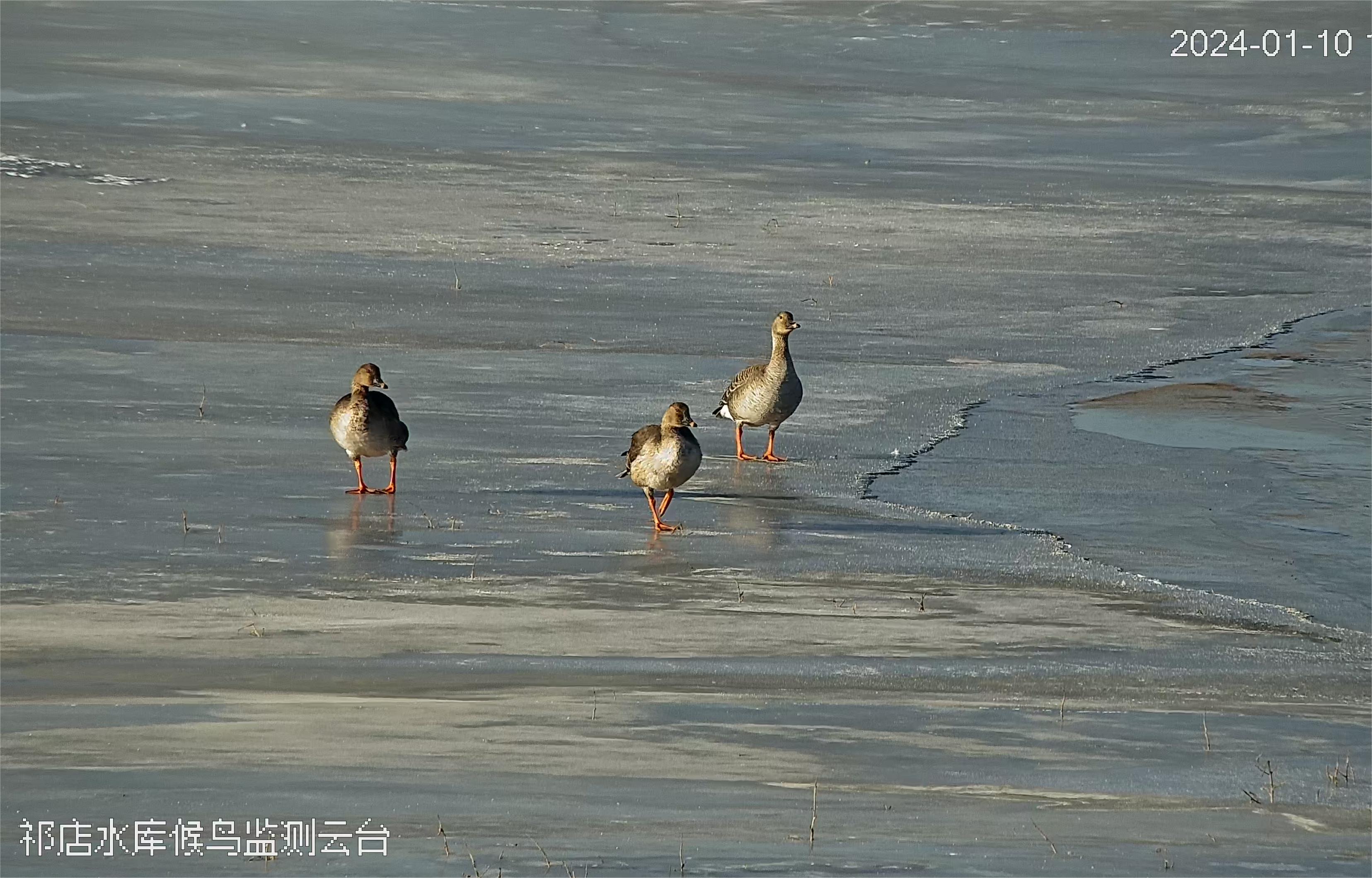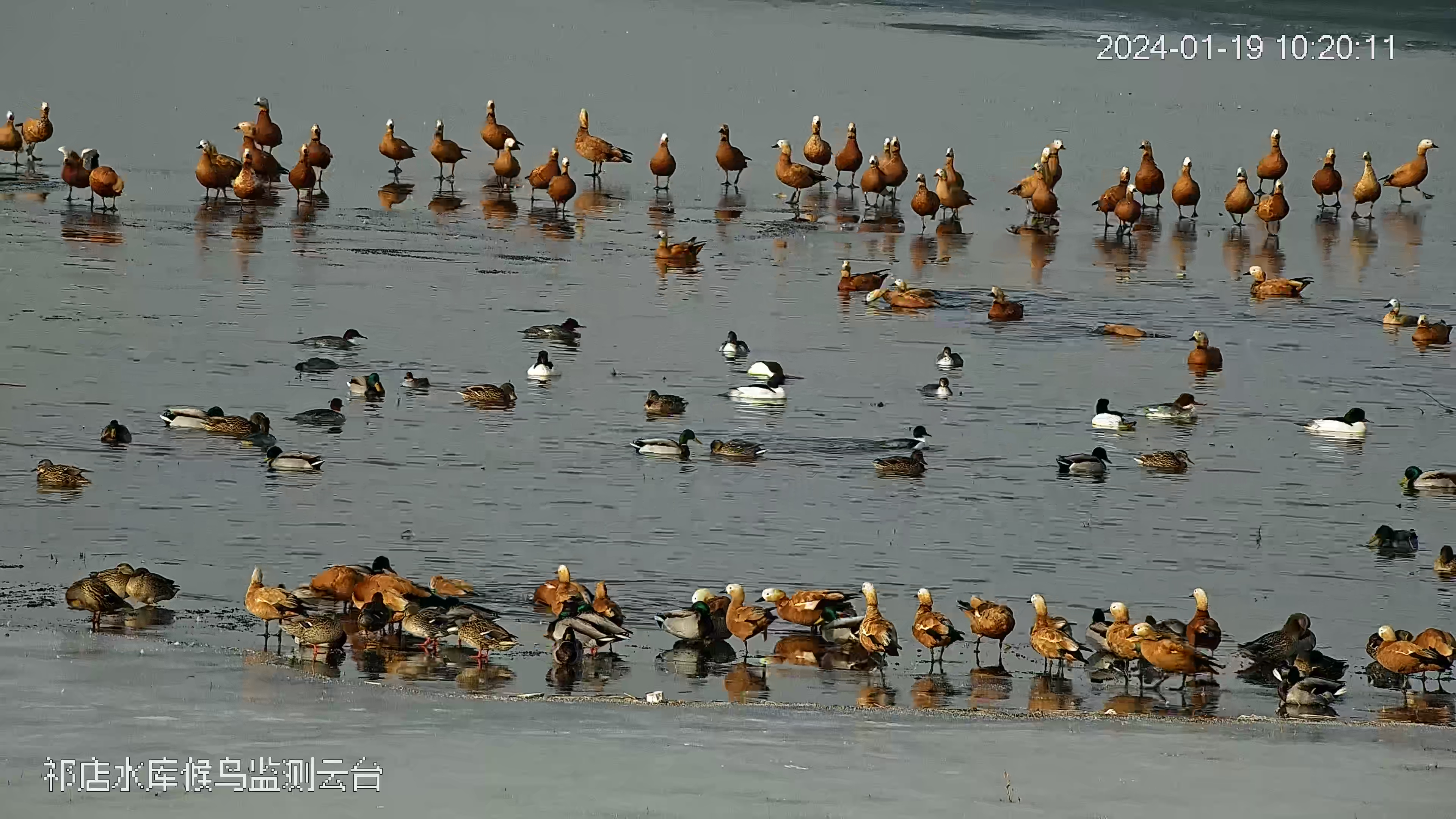 入冬以來,祁家店水庫大部分水面已被冰雪覆蓋,只有靠近入水口的部分水面沒有封凍,但這里卻成為了上千只候鳥的越冬樂園。這些越冬候鳥中,以雁鴨類數(shù)量最多,500多只綠頭鴨成為領(lǐng)頭大軍,其次為赤麻鴨、斑嘴鴨、普通秋沙鴨、豆雁、大白鷺和白尾海雕。