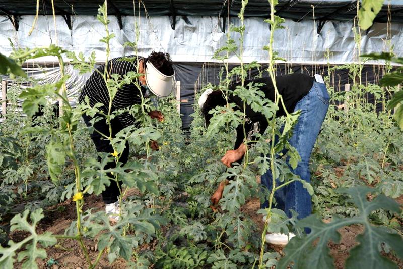同樣,在臨澤縣倪家營鎮(zhèn)高莊村農(nóng)業(yè)發(fā)展有限公司的西瓜種植大棚內(nèi),一排排蔥綠的瓜秧長勢(shì)旺盛。瓜農(nóng)們正忙著給它們掐尖、留蔓、授粉。據(jù)大棚負(fù)責(zé)人介紹,西瓜采用吊蔓立體種植,從種植到收獲只需60天左右,周期短、口感好、產(chǎn)量高,備受消費(fèi)者青睞,收益很可觀。