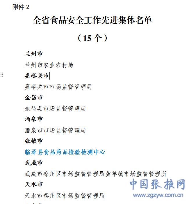 臨澤縣食品藥品檢驗(yàn)檢測(cè)中心榮獲“全省食品安全工作先進(jìn)集體”稱號(hào)