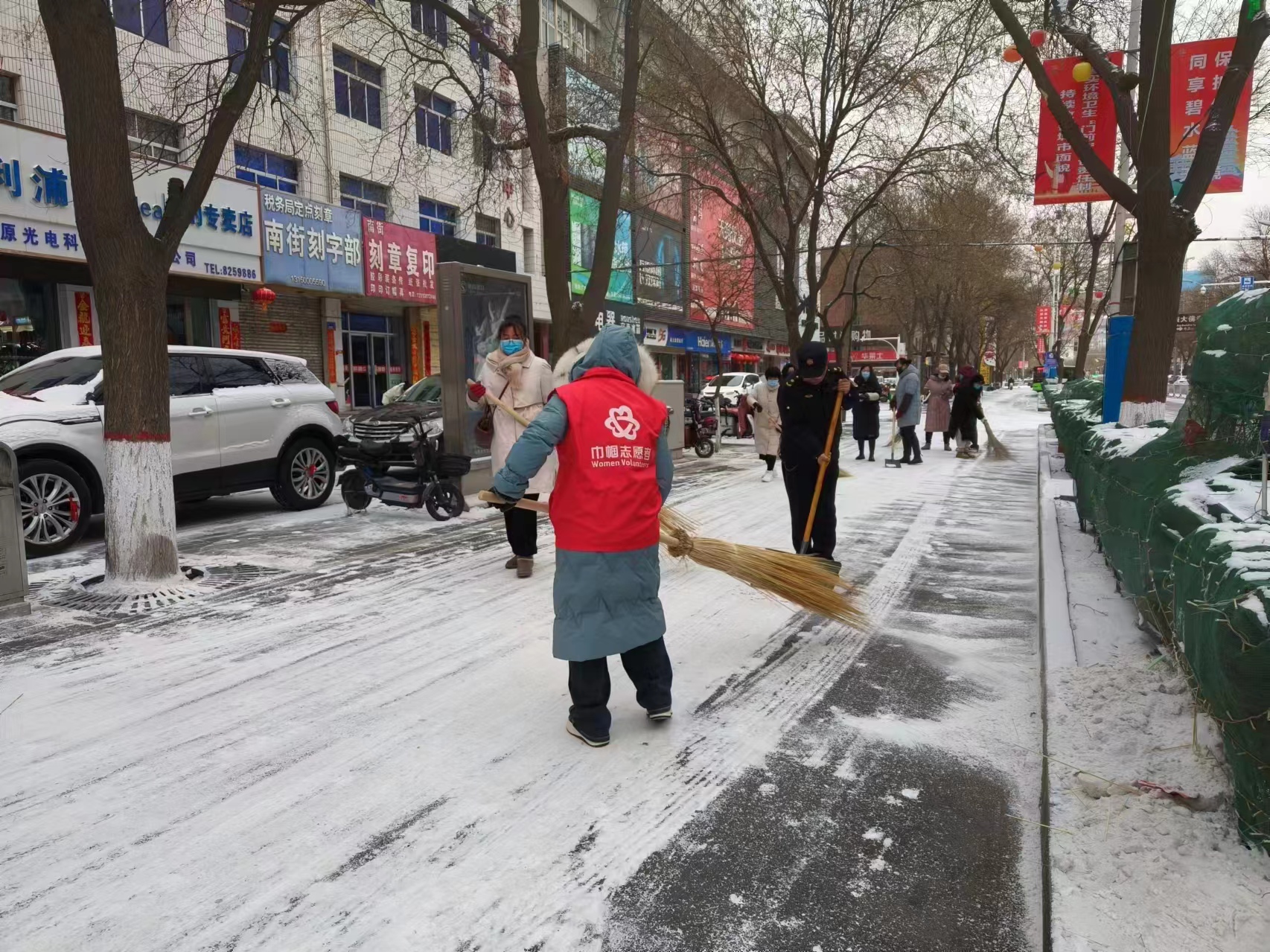 活動中志愿者們自帶掃帚、笤帚、鐵鍬等鏟雪工具,努力清除路面的積雪。大家怕嚴寒,配合默契,干勁十足,揮舞著除雪工具,雖然天氣寒冷,然而這一切絲毫沒有影響大家高漲的掃雪熱情。