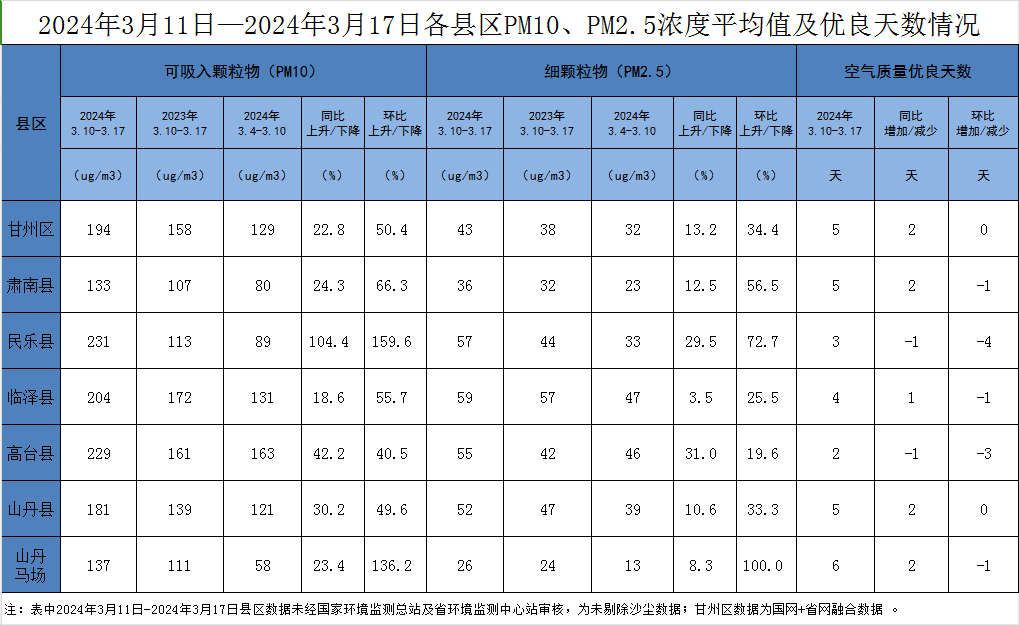 張掖市各縣區(qū)空氣質(zhì)量周報(bào)