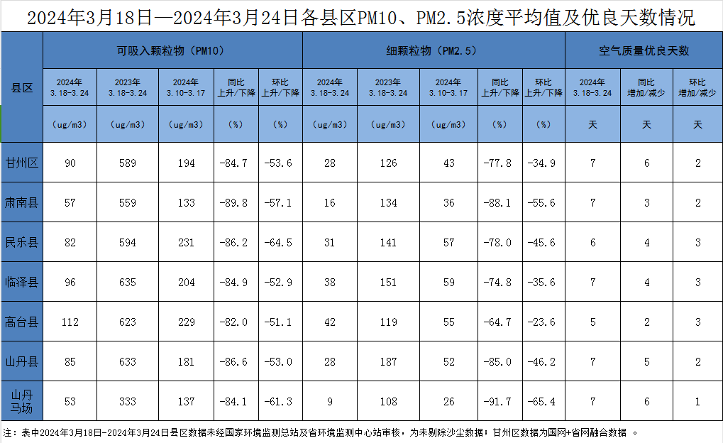 張掖市各縣區空氣質量周報