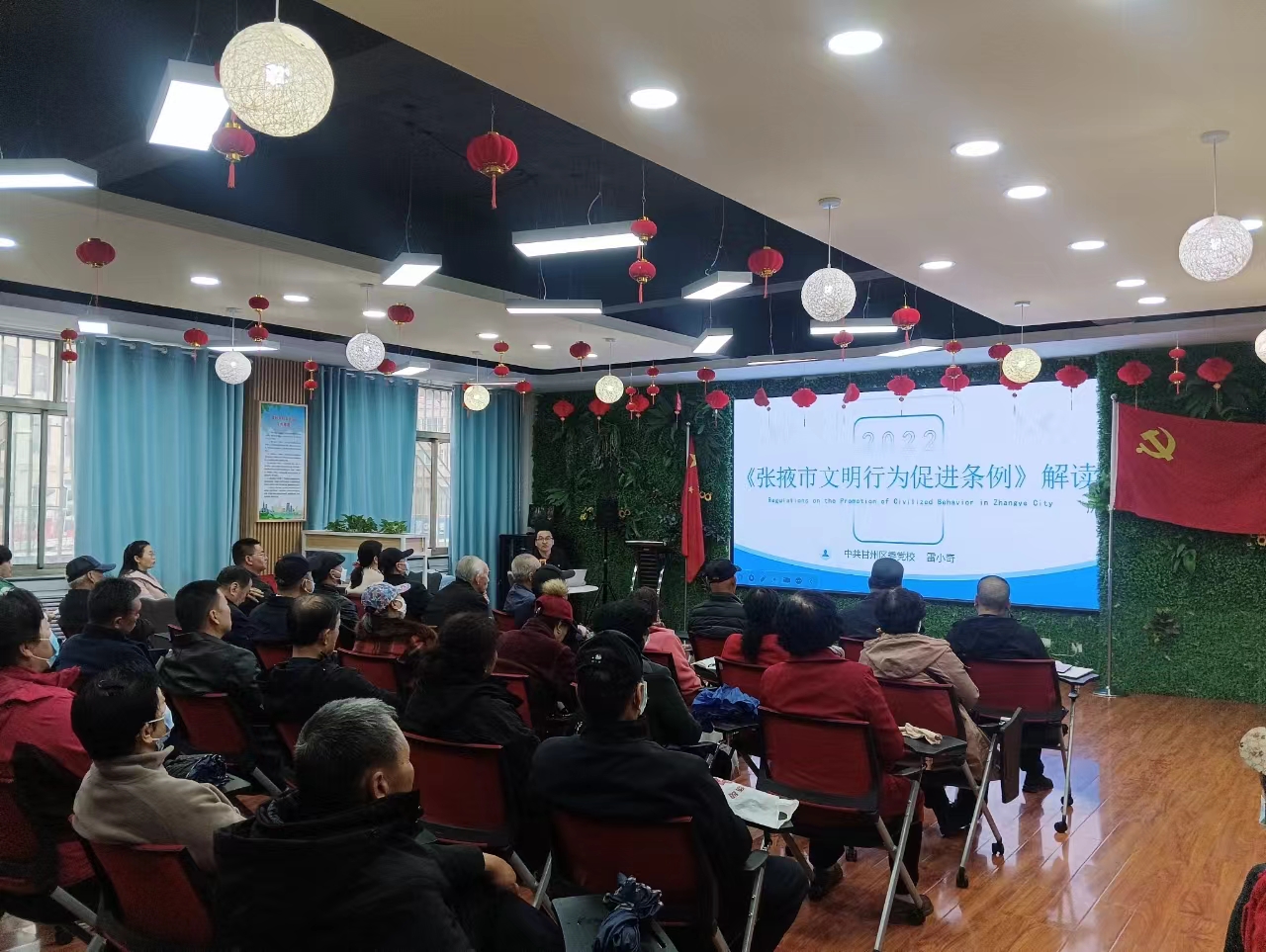 中國張掖網(wǎng)甘州訊為培育和踐行社會主義核心價值觀,促進文明行為,提升居民思想道德和社會文明程度,維護社會良好秩序,推動文明社會進步,有效提高全體居民自我管理、自我教育、自我約束的能力,近日,甘州區(qū)東街交通巷社區(qū)組織社區(qū)全體工作人員和支部黨員開展《張掖市文明行為促進條例》學習宣講活動,助推文明城市創(chuàng)建。