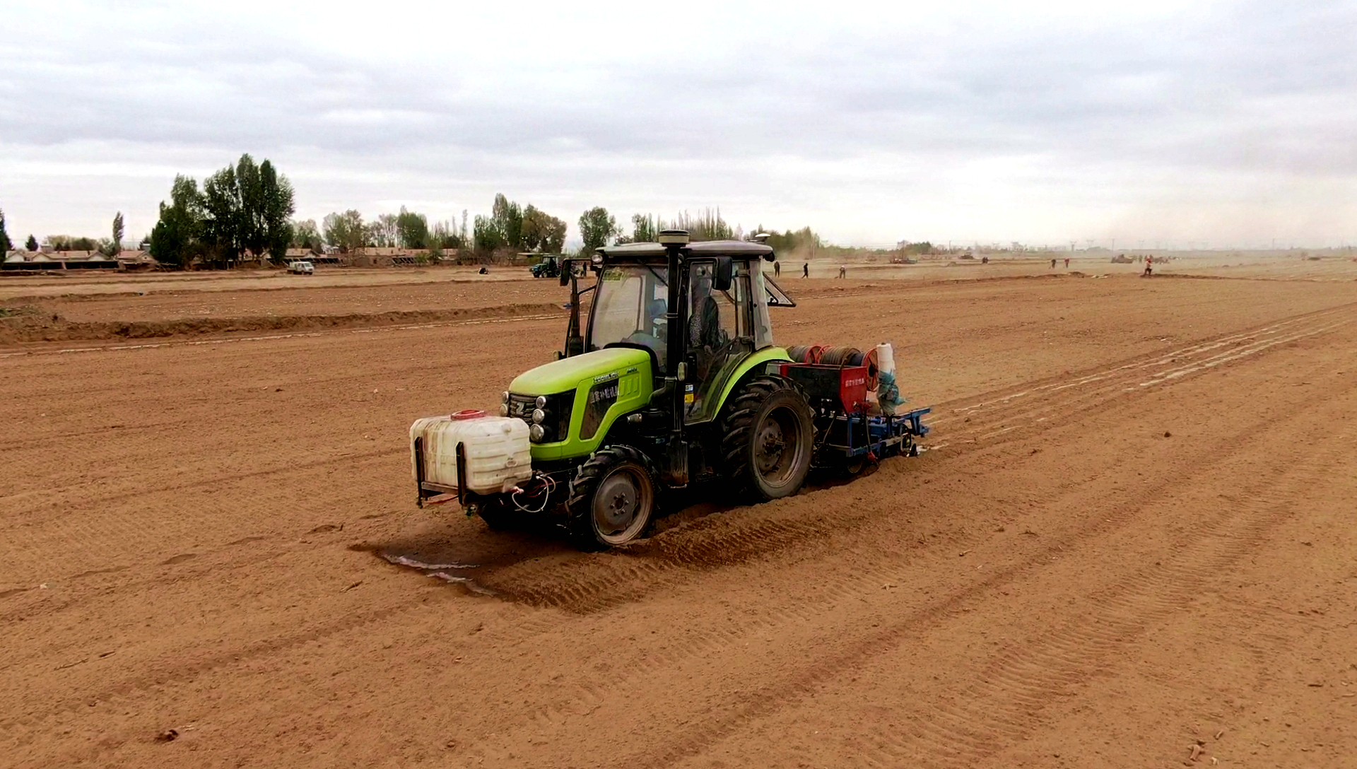 在倪家營鎮汪家墩村的高標準農田里,農機來回穿梭,隨著覆膜機緩緩駛過,裝有北斗導航系統的滴管水肥一體化覆膜機正按照設定的路線勻速前進,施肥、鋪設滴灌管等作業一氣呵成,條條地膜橫臥田間,銀光閃閃,陽光照耀下,呈現出一幅美麗的春耕畫卷。