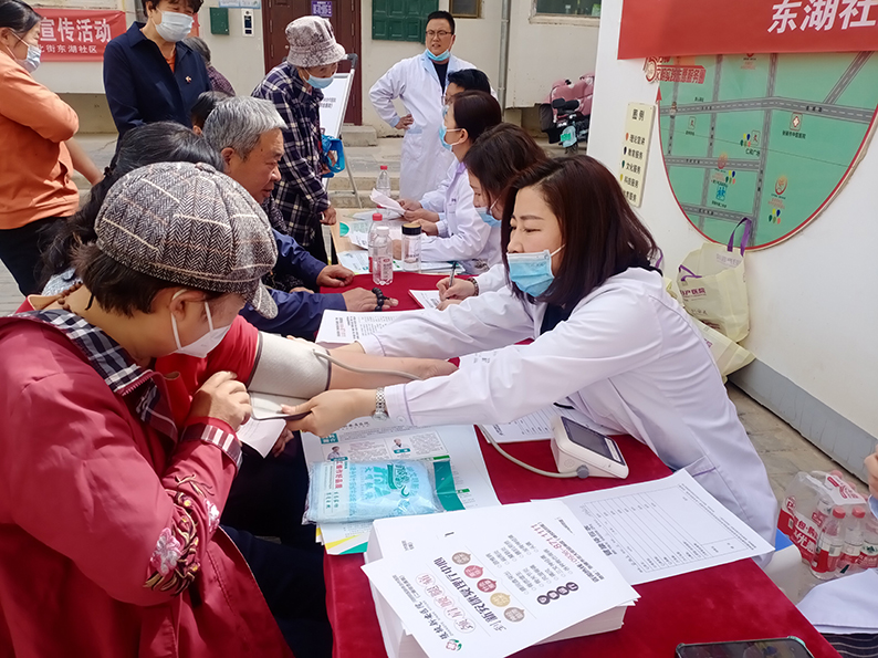 現(xiàn)場,來自新安醫(yī)院的醫(yī)務(wù)人員耐心地與每一位前來診治和咨詢的老年人交流,為他們提供測血壓、測血糖、內(nèi)科檢查等服務(wù),并根據(jù)檢查結(jié)果以及每個人的身體狀況,給予科學(xué)合理的治療建議和注意事項。隨后,醫(yī)務(wù)人員對老年人常見病如糖尿病、高血壓等進行了詳細(xì)講解,引導(dǎo)老年人加強自我保健,適當(dāng)運動、合理膳食、規(guī)律生活,保持樂觀的心態(tài),正確對待生活,使身心共同健康。