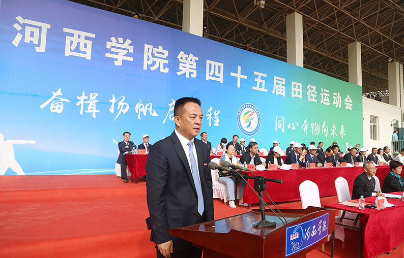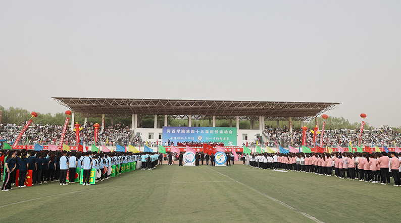 中國張掖網訊 5月15日,河西學院第45屆田徑運動會開幕。學院相關領導及張掖市體育局負責人,校組委會成員、全體運動員、裁判員及師生代表出席開幕式。