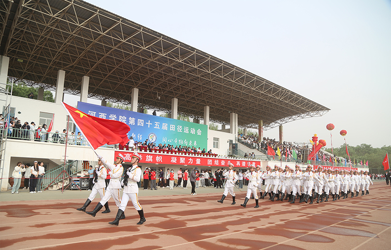 當天上午8時,在學校塑膠運動場上,紅旗卷卷,鼓樂聲喧。伴隨著激昂的《運動員進行曲》,國旗班、儀仗隊、裁判員及各單位運動員代表隊依次入場,他們精神抖擻、昂首闊步,邁著整齊矯健的步伐走過主席臺,充分展現了河西學院人“追求卓越、自強不息”的精神風貌和朝氣蓬勃、意氣風發的青春風姿。