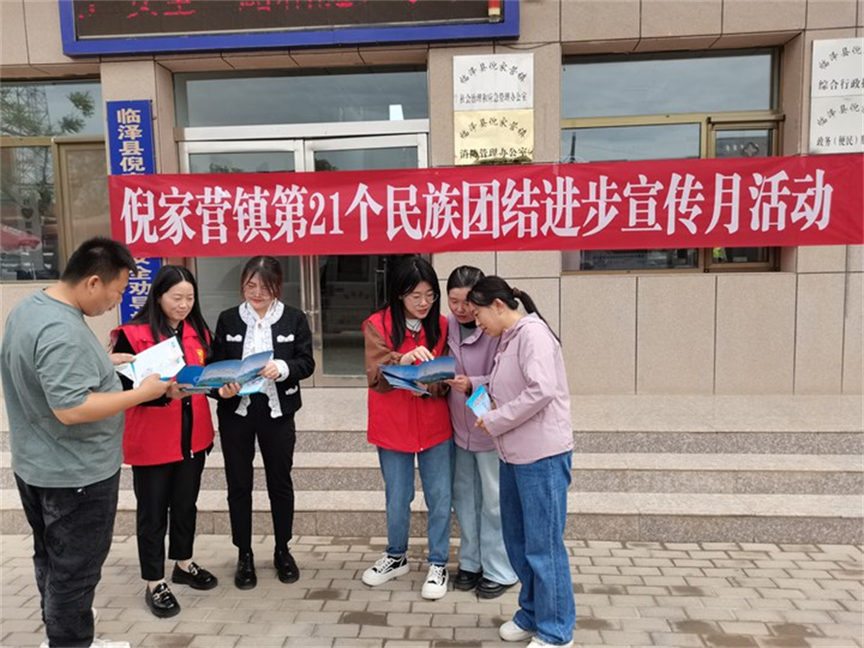 “五十六個星座五十六枝花,五十六族兄弟姐妹是一家……”伴著這首耳熟能詳的歌曲,新時代文明實踐志愿者在鎮政務(便民)服務中心門口設立宣傳點,向廣大群眾宣傳民族團結進步相關知識,普及民族政策、講解法規知識,并提供咨詢服務,發放宣傳彩頁、手冊500余份;同時,充分利用“七彩倪家營”視頻公眾號、LED顯示屏等宣傳載體,播放轉載“鑄牢中華民族共同體意識”宣傳片,全方位多角度寬領域深層次開展民族理論政策宣傳,使“三個意識”“四個與共”“五個認同”的思想理念深入人心,在全鎮上下營造“中華民族一家親,同心共筑中國夢”的濃厚氛圍。