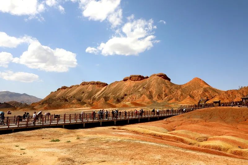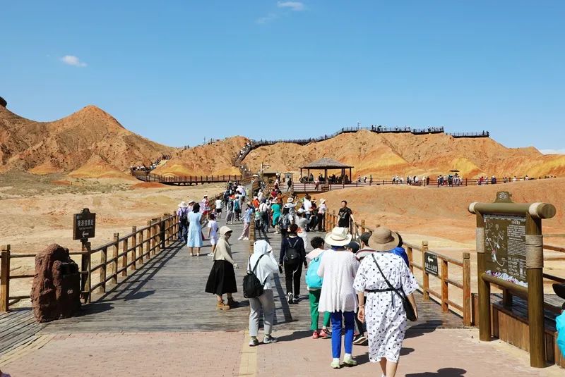 張掖七彩丹霞景區作為全球唯一的丹霞地貌與彩色丘陵的復合區,以艷麗的色彩、獨特的造型享譽全球,是世界十大神奇地理奇觀和全球最刻骨銘心的二十二處風景之一,已成為中外游客的向往之地。景區內觀景臺上人頭攢動,游客們紛紛舉起手機,定格自己與“七彩畫卷”的美麗邂逅。