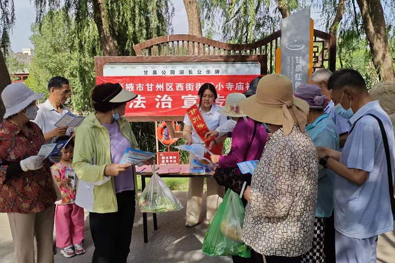 中國張掖網甘州訊為進一步提高群眾遇事找法、依法辦事的意識和能力,近期,甘州區西街街道小寺廟社區依托“禁毒宣傳月”廣泛開展普法宣傳。