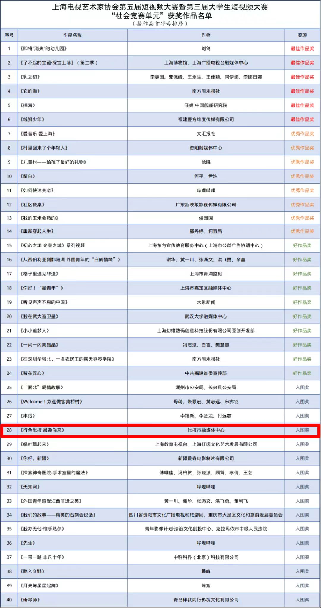 近日,上海電視藝術家協(xié)會第五屆短視頻大賽暨第三屆大學生短視頻大賽獲獎作品名單公示,本次大賽以“美麗中國”為主題,分社會和高校兩個競賽單元。由張掖市融媒體中心創(chuàng)作的《行色張掖晨邀你來》系列短視頻從社會競賽單元3160部作品中脫穎而出,獲得入圍獎。