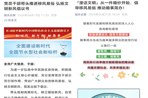 堅持黨建引領(lǐng)、黨員示范、黨群共建,結(jié)合“三會一課”、黨員“固定活動日”、新時代文明實踐等活動,把移風(fēng)易俗融入黨員日常教育管理過程中,利用學(xué)習(xí)強國、“弱水合黎”微信公眾號、微信群等平臺,持續(xù)推送移風(fēng)易俗等相關(guān)內(nèi)容,不斷加強群眾文明意識和文明理念。充分發(fā)揮黨員干部模范帶頭作用,倡導(dǎo)全鎮(zhèn)黨員干部開展移風(fēng)易俗活動,健全完善黨員干部操辦婚喪事宜報告等制度,并簽訂《黨員干部移風(fēng)易俗承諾書》,通過黨員示范帶動,引導(dǎo)群眾自覺做移風(fēng)易俗的推動者,形成自覺抵制陳規(guī)陋習(xí)的良好社會氛圍。至目前,全鎮(zhèn)累計開展“三會一課”70余次,簽訂《黨員干部移風(fēng)易俗承諾書》386份。