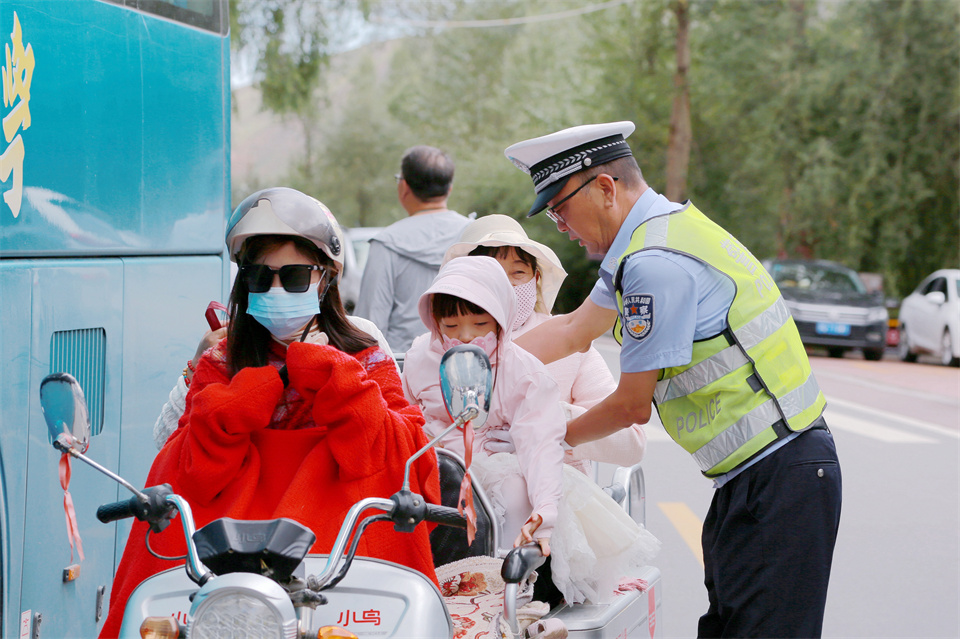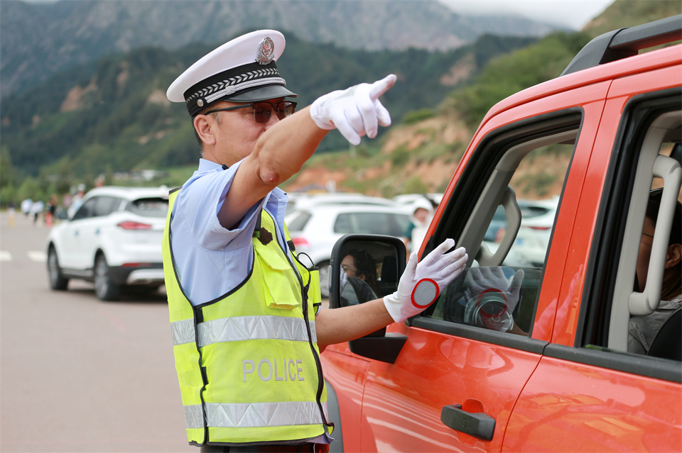 中國張掖網訊 “路上有交警及時疏導交通;景點隨處有警察值守,附近就有警車;景區棧道時時有警察巡邏、安全勸導……看到這一抹‘藍色’,我們心里就有滿滿的安全感。”來自重慶的游客王女士在肅南縣馬蹄寺旅游景區游玩時感嘆道。