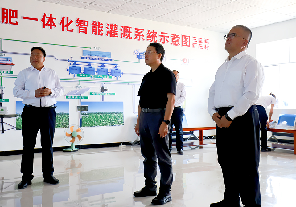 在三堡鎮,盧小亨詳細了解建設新時代全國節水型社會新標桿工作、高標準農田智慧灌溉節水示范基地建設等情況。他強調,要按照“控總量、優結構,用技術、建機制,強監管、重調節”的思路,系統做好節水用水興水護水文章,為建設新時代全國節水型社會新標桿作出積極貢獻。要在結構節水上出實招,始終堅持以水定規模、調結構,推進適水種植、量水生產,切實守牢水資源利用上限。要在工程節水上下功夫,積極推行串聯用水、分質用水、循環用水,通過制度、管理、工藝、設備節水創新,打造企業節水典范標桿。要在技術節水上做文章,圍繞智慧農業、戈壁節水農業開展科研創新,著力強化智能節水,全面提升智慧水務建設應用水平。