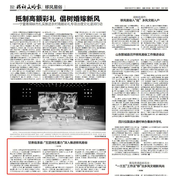近年來,甘肅省張掖市臨澤縣聚焦以文化人、成風化俗,以“五堅持五著力”持續推進移風易俗,聚力文明提升、培樹文明新風。