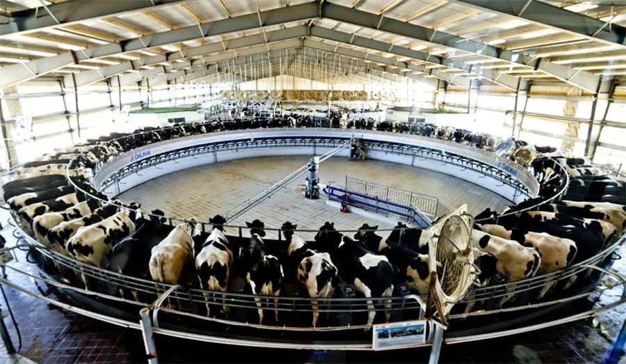 每天早上7點(diǎn),地處高臺(tái)縣合黎鎮(zhèn)五四村北灘的甘肅燕塘傳祁牧業(yè)有限公司擠奶大廳一派忙碌,全自動(dòng)擠奶轉(zhuǎn)盤不停運(yùn)轉(zhuǎn),一頭頭配戴“項(xiàng)圈”,耳釘標(biāo)識(shí)牌的奶牛自覺(jué)進(jìn)入轉(zhuǎn)盤,經(jīng)過(guò)擠奶員前藥浴、擠三把奶、擦拭、上杯、巡杯、后藥浴系列操作后開(kāi)始產(chǎn)奶。“9-10月是產(chǎn)犢高峰期,也是奶牛產(chǎn)奶較多的時(shí)間段,一天24小時(shí)4班次擠奶,日產(chǎn)鮮奶105噸。”甘肅燕塘傳祁牧業(yè)有限公司場(chǎng)長(zhǎng)許建鵬介紹,公司引進(jìn)瑞典進(jìn)口的利拉伐80位PR3100轉(zhuǎn)臺(tái)和目前最先進(jìn)的帝波羅軟件,可及時(shí)監(jiān)測(cè)到滑杯、漏氣、脫杯等情況,其更大、更快、更強(qiáng)、更智能的優(yōu)化設(shè)計(jì),為牧場(chǎng)高科技、高效率、數(shù)字化生產(chǎn)貢獻(xiàn)了“核心”力量。