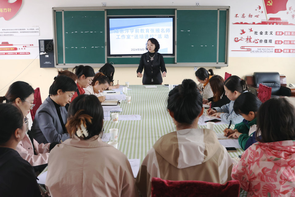 中國張掖網訊 為全面落實《甘州區新時代義務教育階段學校教育質量評價改革指導意見》,甘州區教育局以“三抓三促”行動為契機,進一步構建甘州區“一體三翼”教學研訓共同體教科研模式,積極推進全面落實名師領航工程建設,充分發揮名優教師的示范、引領、輻射和帶動作用,推進鄉村幼兒園保教工作有序開展,9月12日,“陸惠萍學前教育張掖名師工作室”一行四人赴甘州區甘浚鎮中心幼兒園開展“送培進校”活動。本次活動由甘州區教育局教研室主辦,陸惠萍學前教育張掖名師工作室和甘州區甘浚鎮中心幼兒園聯合承辦,現場共15位一線教師參與活動。