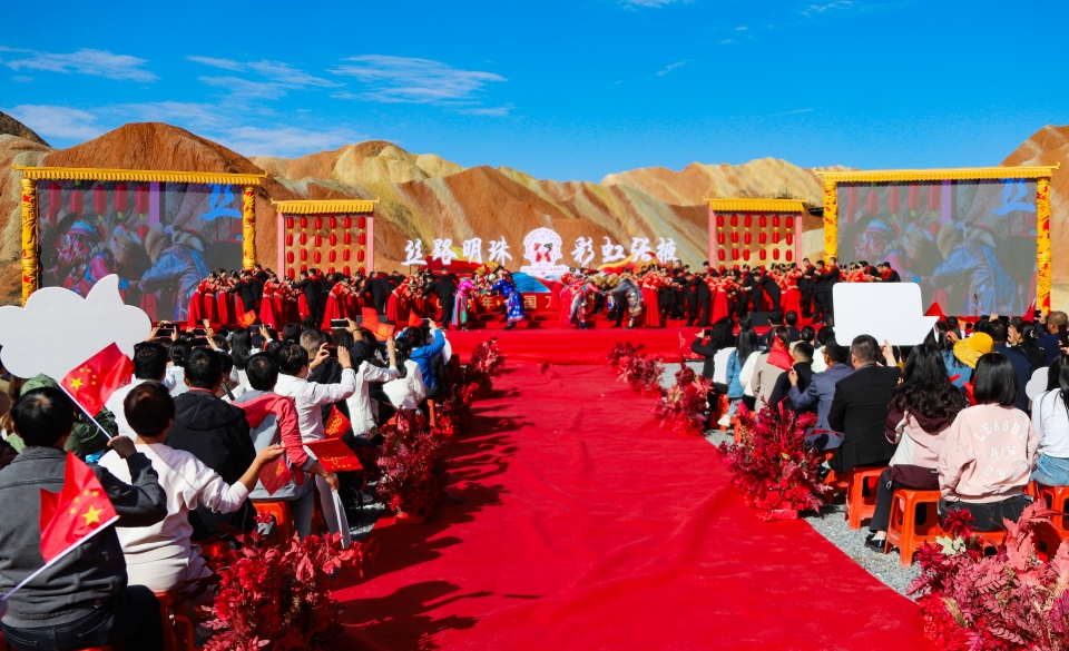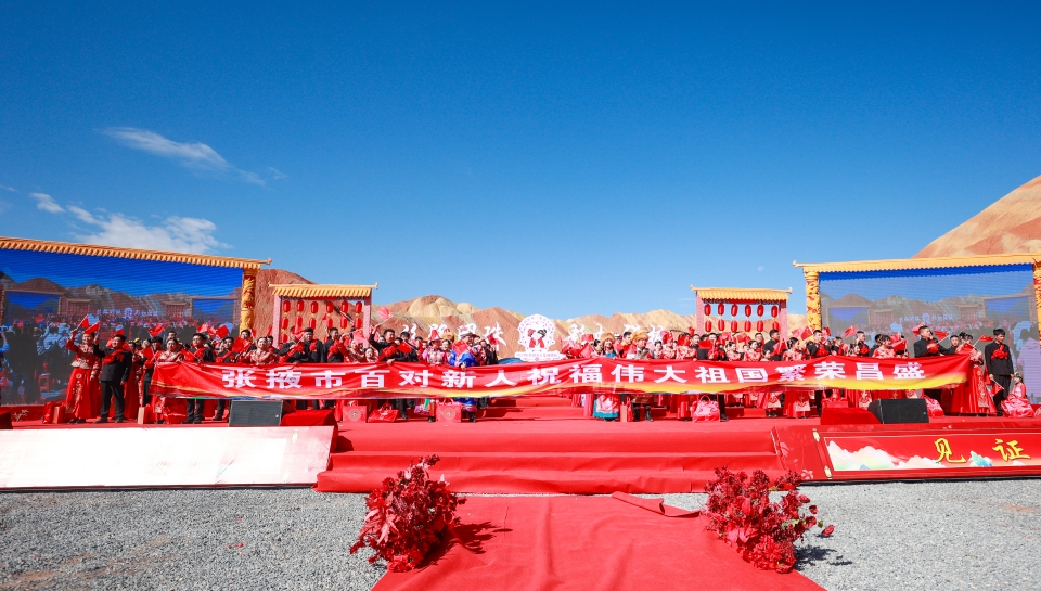 “集賢納福,共締良緣;執子之手,與子偕老”。9月22日,“家國同慶 見證幸福”2024年全國萬人集體婚禮張掖百人集體婚禮舉行,全市百對新人齊聚張掖世界地質公園七彩丹霞景區,在藍天白云和秀美丹霞的映襯下,在親人及觀禮嘉賓的見證下,攜手步入婚姻的殿堂。