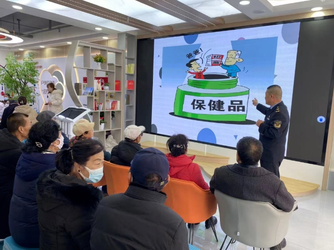 打破保健食品消費誤區。老年人是保健食品的主要消費群體,當前,一些“黑商家”打著“治病強身”的幌子,夸大產品功效,用盡義診、講座、贈送小禮品等哄騙、拉攏手段,誘導不少老年人踩坑上當。為幫助老年群體提高科學保健和防騙反詐能力,甘州區市場監管局積極開展食品安全進社區、銀發食安講堂等宣教活動13場次,現場解析法律法規,播放發生在群眾身邊的案例警示片,普及食品安全生活小常識,面對面答疑解惑老年人日常保健食品消費“那些煩心事兒”,耐心教他們如何辨別保健食品“小藍帽”和特殊醫學用途配方食品“小藍花”的專屬標志,引導老年人客觀、理性選購保健食品。
