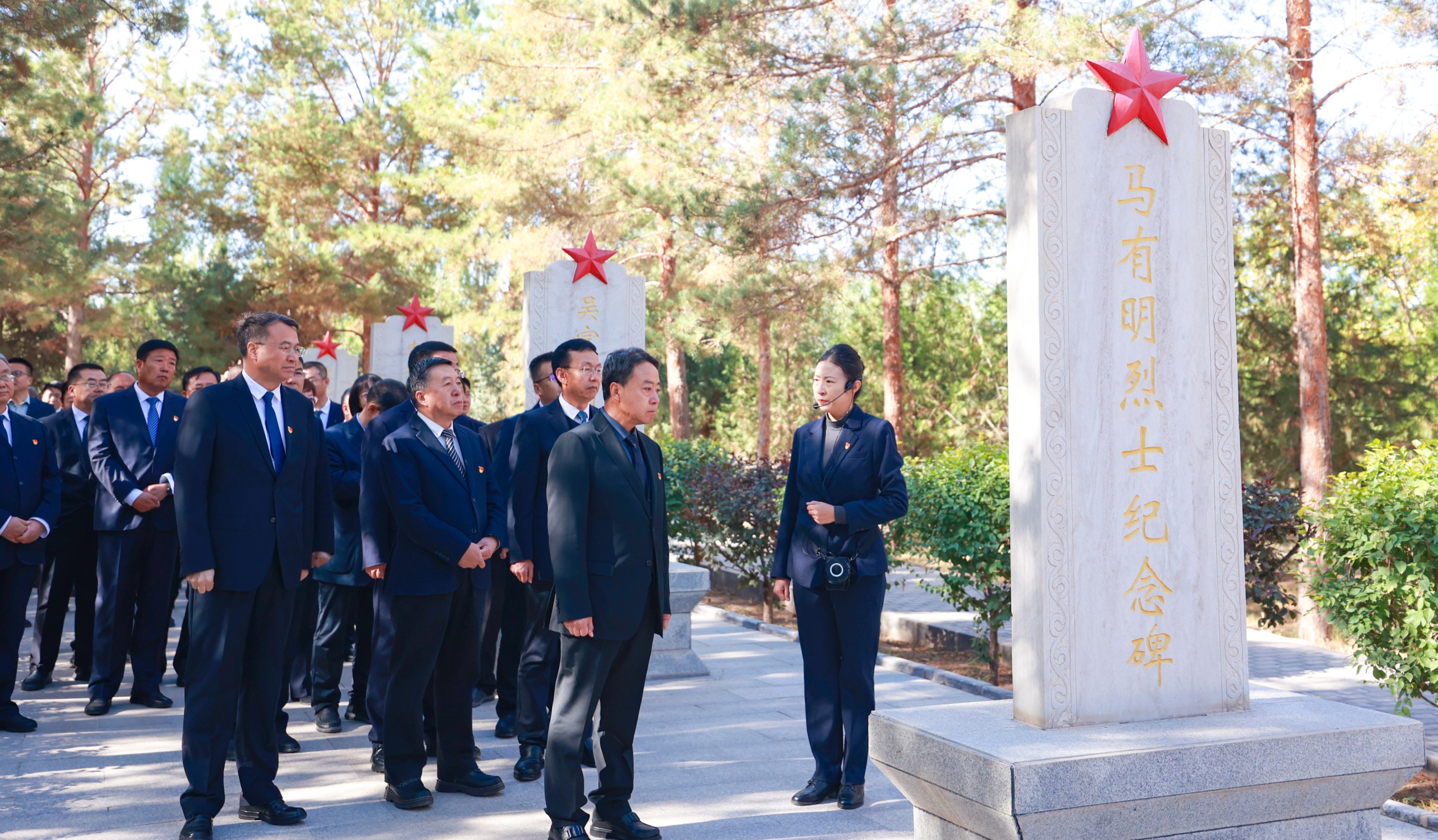 盧小亨邁步登上紀念碑基座,仔細整理花籃緞帶。隨后,參加儀式的全體人員緩步繞行,瞻仰烈士紀念碑,向烈士公墓敬獻鮮花并鞠躬。期間,盧小亨等不時駐足,認真聆聽革命先烈征戰河西走廊的英雄事跡,深切緬懷革命烈士們的豐功偉績。