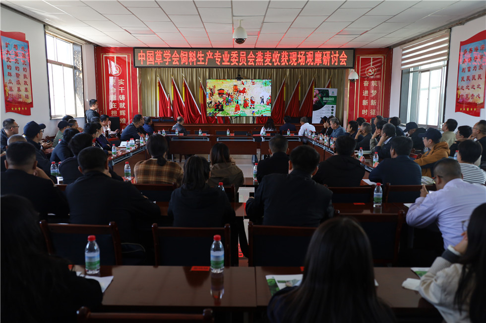 中國張掖網訊 10月12日,由中國草學會飼料生產專業委員會、甘肅農業大學草業學院,張掖市畜牧獸醫局主辦的中國草學會飼料生產專業委員會燕麥收獲現場觀摩暨研討會在張掖市召開,來自中國草學會飼料生產專業委員會、省畜牧技術推廣總站及全國知名高校、科研院所、草業企業負責人和客商等共計120余位嘉賓參會。