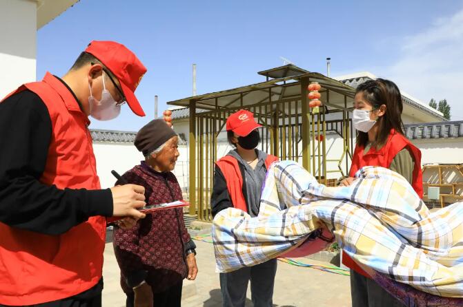 2023年3月,臨澤縣平川鎮(zhèn)蘆灣村開展“曬被子·比孝心”志愿服務(wù)活動(dòng)(楊芮攝)