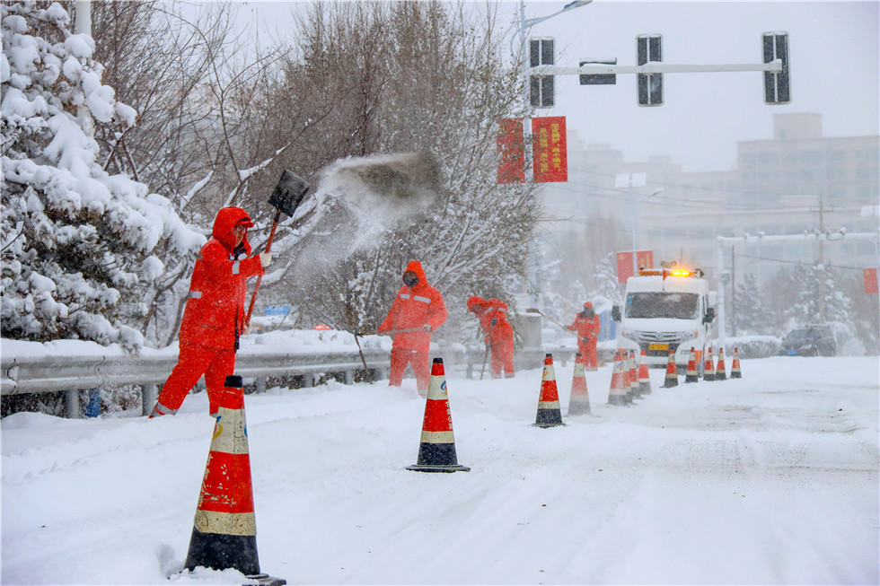 降雪發生后,張掖公路事業發展中心以雪為令,迅速組織機械、人員按照“雪中路通、雪后路暢、隨下隨清”的工作原則,采取機械往返逐段除雪的方式,并在橋面、急彎陡坡、長下坡、背陰易滑路段撒鋪防滑料和融雪劑,全力以赴降低路面積雪對行車造成的影響,保障過往車輛的安全通行。