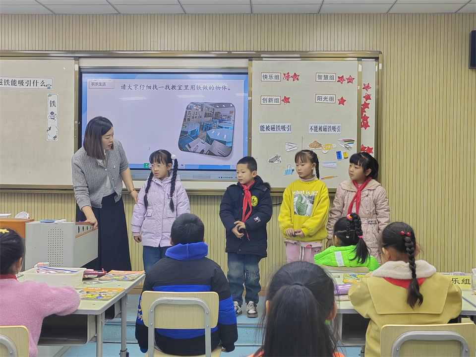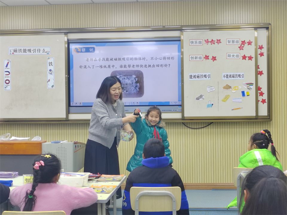 徐文豪老師生動有趣的《月相的變化規(guī)律》,通過手指操表演、古詩詞情境創(chuàng)設(shè),聚焦科學(xué)問題。以學(xué)生動手畫月相、視頻演示看月相變化、利用圖片擺月相等有效有趣探究,水到渠成的發(fā)現(xiàn)總結(jié)出月相變化規(guī)律,將月相這一抽象概念變得鮮活易懂,孩子們仿佛跟隨老師踏上了一場穿越時空的月球之旅。黃彥嬌老師在《磁鐵有磁性》一課里,老師帶來了形形色色的磁鐵和豐富的材質(zhì),孩子們親自動手實驗探索,當(dāng)看到磁鐵輕松吸起鐵釘,卻對塑料片無動于衷時,孩子們的眼中滿是好奇與驚喜。他們在一次次嘗試中探索磁鐵的兩極,感受磁場的無形力量,也在實踐操作中培養(yǎng)了嚴(yán)謹(jǐn)?shù)目茖W(xué)態(tài)度和動手能力。韓海金老師的《推動社會發(fā)展的印刷術(shù)》上讓孩子們學(xué)習(xí)體驗拓印技術(shù),了解了印刷術(shù)的發(fā)歷史及制作流程。感受印刷技術(shù)對世界文明的深遠(yuǎn)影響,在探索中大膽嘗試并探究科技的奧秘。隨后教研組評議研討環(huán)節(jié),送教教師與在場教師深入交流分享。從如何巧妙設(shè)計科學(xué)實驗激發(fā)學(xué)生興趣,到怎樣引導(dǎo)學(xué)生進(jìn)行深度思考與自主探究;從課堂教學(xué)的有效組織管理,到利用現(xiàn)代教育技術(shù)拓展科學(xué)教學(xué)資源等多個方面,都進(jìn)行了細(xì)致入微的交流與探討。老師們專注聆聽、記錄、深受啟發(fā)。為今后提升科學(xué)教學(xué)質(zhì)量汲取了寶貴的經(jīng)驗與智慧源泉。