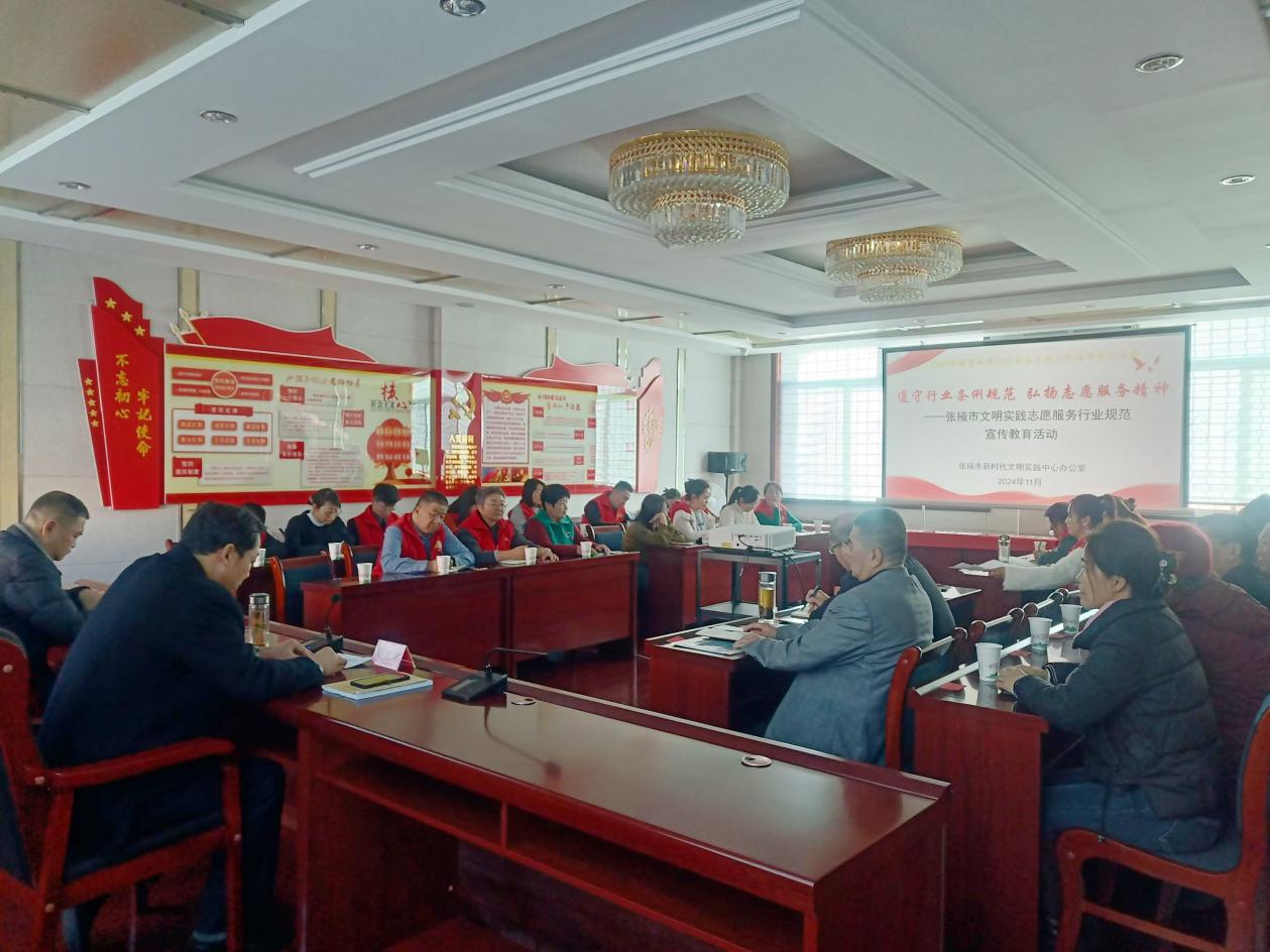 11月26日,市新時代文明實踐中心辦公室舉辦“遵守行業條例規范·弘揚志愿服務精神”張掖市文明實踐志愿服務行業規范宣傳教育活動。市文明實踐辦全體領導干部,部分市直部門單位志愿者代表、群眾代表等參加活動。