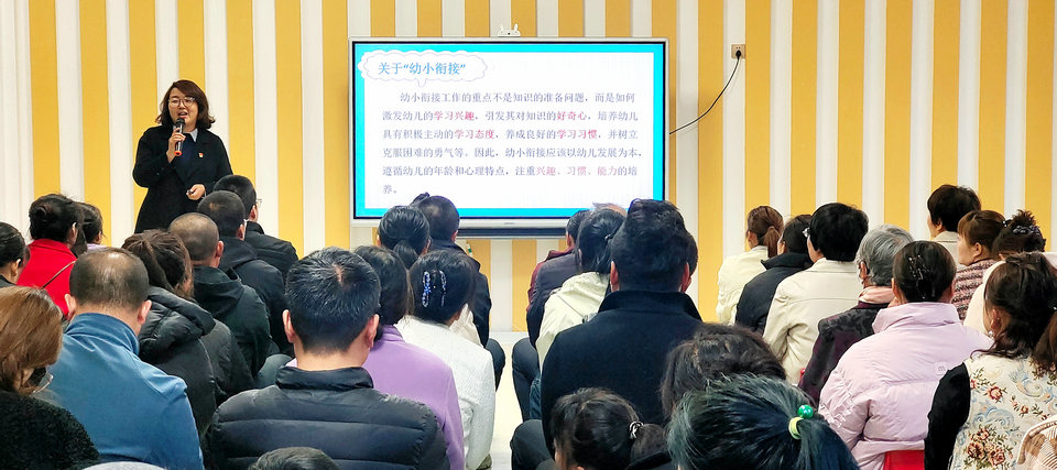 暢通雙向對話,共謀成長路徑。充分利用實驗小學一年級在該園開展日托班的便利條件,實時帶領幼兒觀摩一年級課堂、學習環境,與一年級同學互動交流,激發大班幼兒對小學生活的憧憬與向往。邀請一年級經驗豐富的黨員教師以“溝通銜接,合力共護”為主題進行幼小銜接家長培訓會,給出“四備”建議(備心理、備習慣、備能力、備家校協作),緩解家長焦慮,構建雙向奔赴的銜接模式。