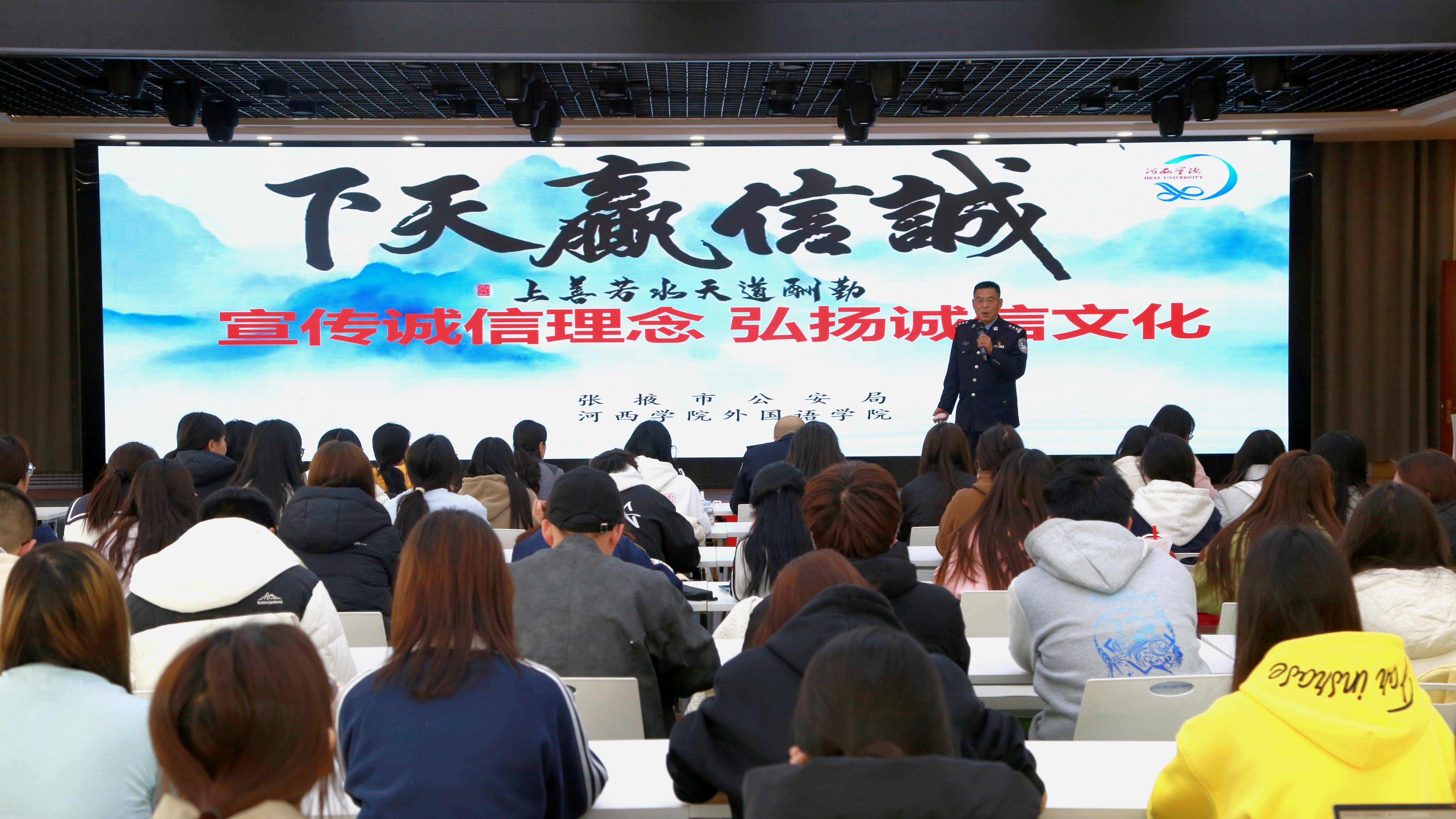 中國張掖網訊 為進一步推進社會信用體系建設,著力營造誠實守信、重信守諾的社會氛圍,傳承弘揚中華民族傳統美德。3月28日,張掖市公安局走進河西學院開展誠信宣傳教育主題活動。
