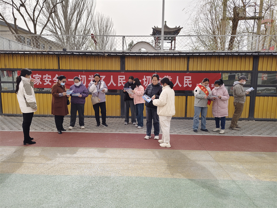 西街街道小寺廟社區通過在公園懸掛橫幅、發放宣傳冊等形式開展宣傳活動,向群眾講解《中華人民共和國國家安全法》《中華人民共和國反間諜法》《中華人民共和國反有組織犯罪法》《中華人民共和國禁毒法》《中華人民共和國民法典》等與維護國家安全密切相關的法律法規。組織召開干部職工大會,傳達學習國家安全觀及《中華人民共和國國家安全法》,并就國家安全工作提出?了相關要求。