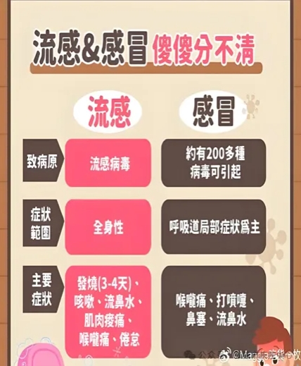 首先,我們要聊一聊那個最為流行的謠傳:“打了流感疫苗還是感冒了,所以流感疫苗沒有必要打”。這種說法嚇得一部分人對疫苗“敬而遠之”。但實際上,接種疫苗就像是給免疫系統搞一場“模擬作戰演習”,讓身體能提前識別并對抗真正的病原體。流感疫苗的“主業”是預防流行性感冒,可不是普通感冒。流感和普通感冒雖然癥狀相似,但它們的病原體、嚴重程度和并發癥風險完全不同:流感由流感病毒(如甲型、乙型流感病毒)引起,癥狀較重,包括高熱、全身酸痛、乏力等,可能導致肺炎、心肌炎等嚴重并發癥,甚至危及生命。普通感冒通常由鼻病毒、冠狀病毒等引起,癥狀較輕,主要表現為流鼻涕、咳嗽、喉嚨痛等,很少引發嚴重并發癥。流感疫苗只能預防流感,不能預防普通感冒。當我們接種流感疫苗時,雖然可能會感到輕微的不適,比如發熱或局部紅腫,但這些癥狀通常很快就會消失,這恰恰證明疫苗正在迫不及待的發揮作用,讓我們的免疫系統“練兵秣馬”,增強保護能力??上攵@其實就是我們的免疫系統在進入消除病毒戰斗之前進行的一次熱身運動,而不是讓我們真的感染流感。