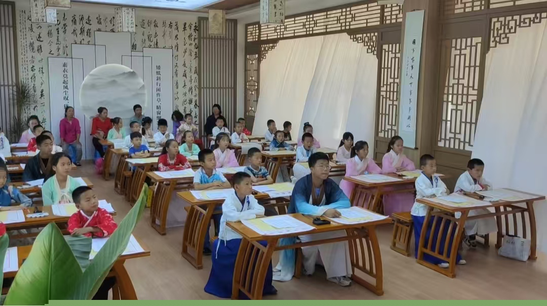 在國學課堂上,青年志愿者通過《三字經》《弟子規》等經典選讀,結合生動的歷史小故事,讓孩子們感受中華傳統文化的魅力;書法練習環節里,孩子們手握毛筆,在墨香中體驗漢字的方正之美。而漢服體驗課更是備受追捧,孩子們穿上素雅的漢服,學習拱手禮、揖禮等傳統禮儀,在“沉浸式”體驗中了解漢服的形制與文化內涵,仿佛穿越回古代,與先賢對話。